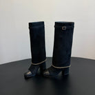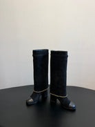 CC Hight Boots Black With Chain Suede And Cowhide 944967