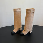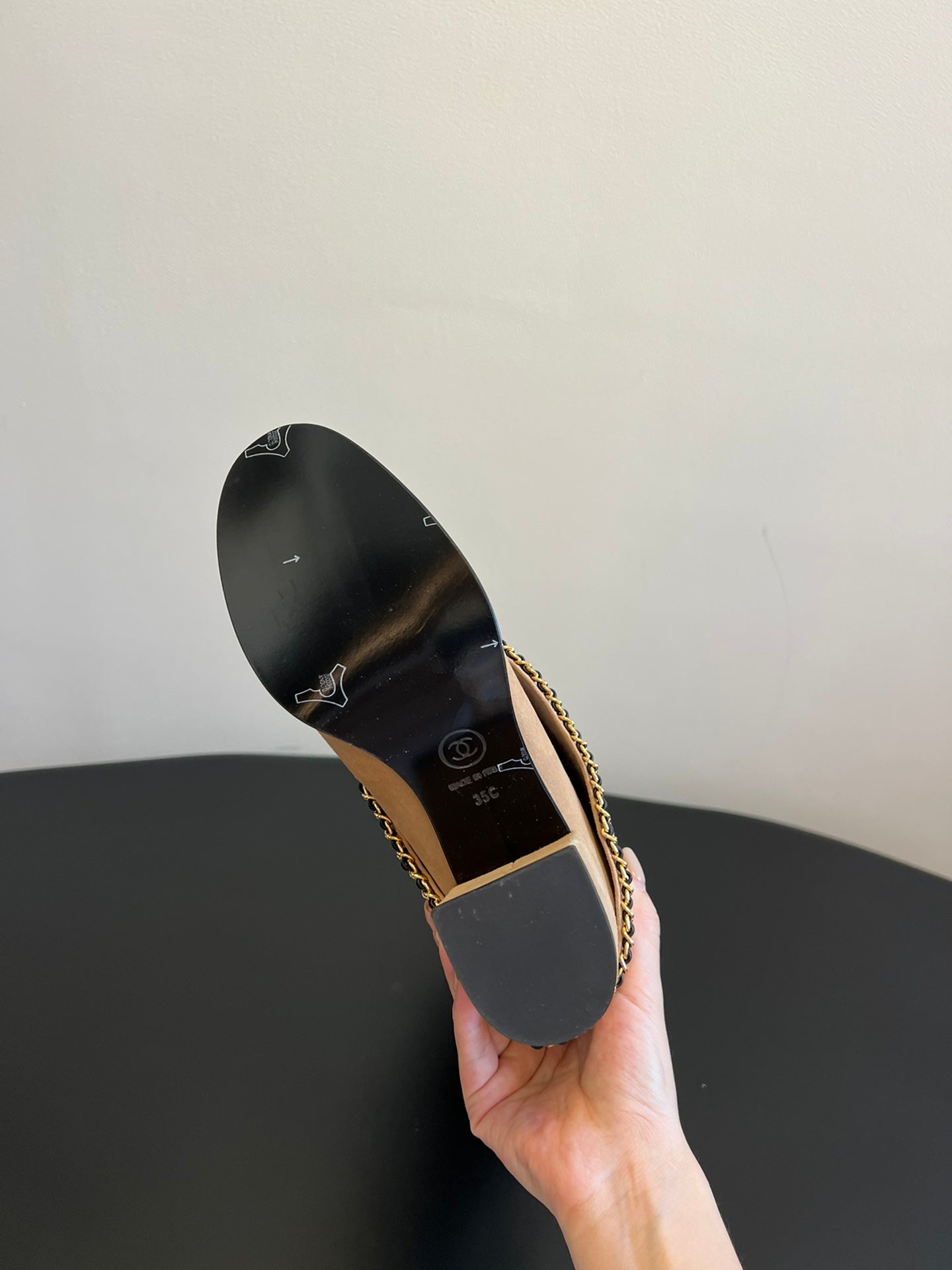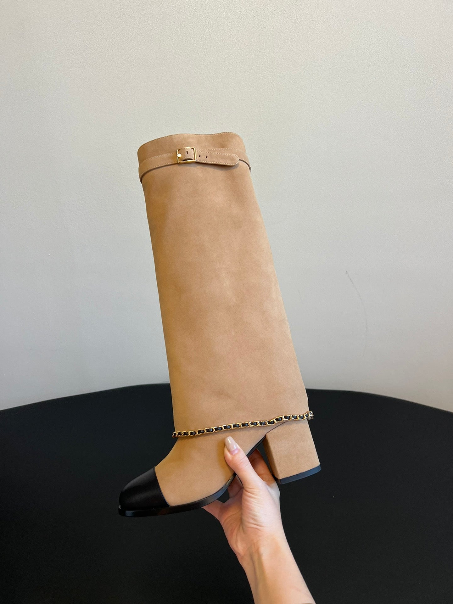 CC Hight Boots Dark Beige With Chain Suede And Cowhide 944969