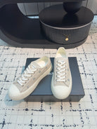 CC Low Sneaker 30mm Light Beige Mix White With Small Flowers Cavas Fabric