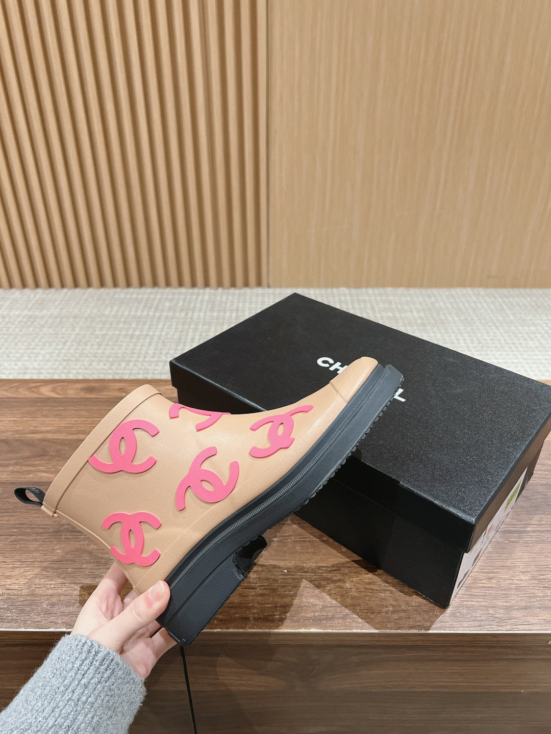 CC RAIN BOOTS BEIGE CREAM TPU WITH PINK LOGO