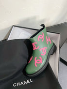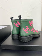 CC Rain boots In Green With Pink Logo Natural Rubber 949790