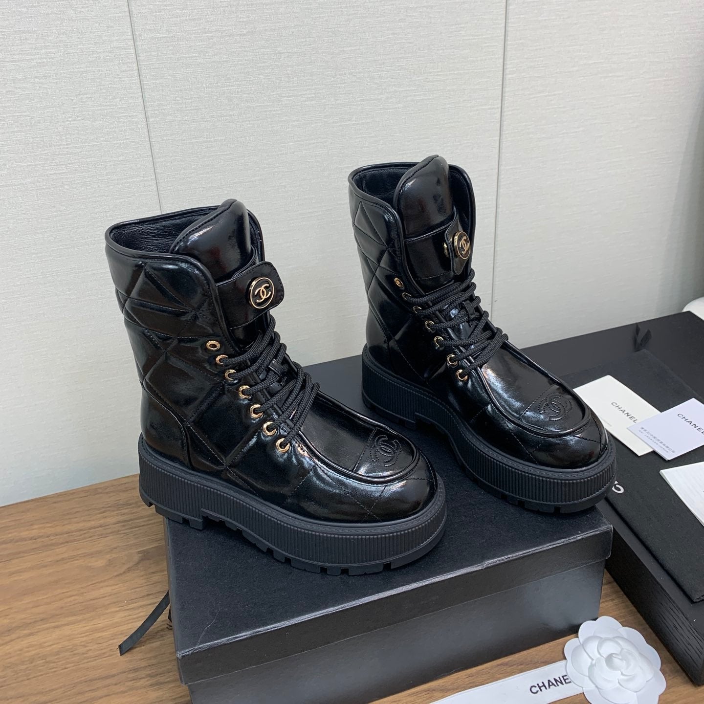 CC Short Boots 30mm Gloosy Black Cowhide