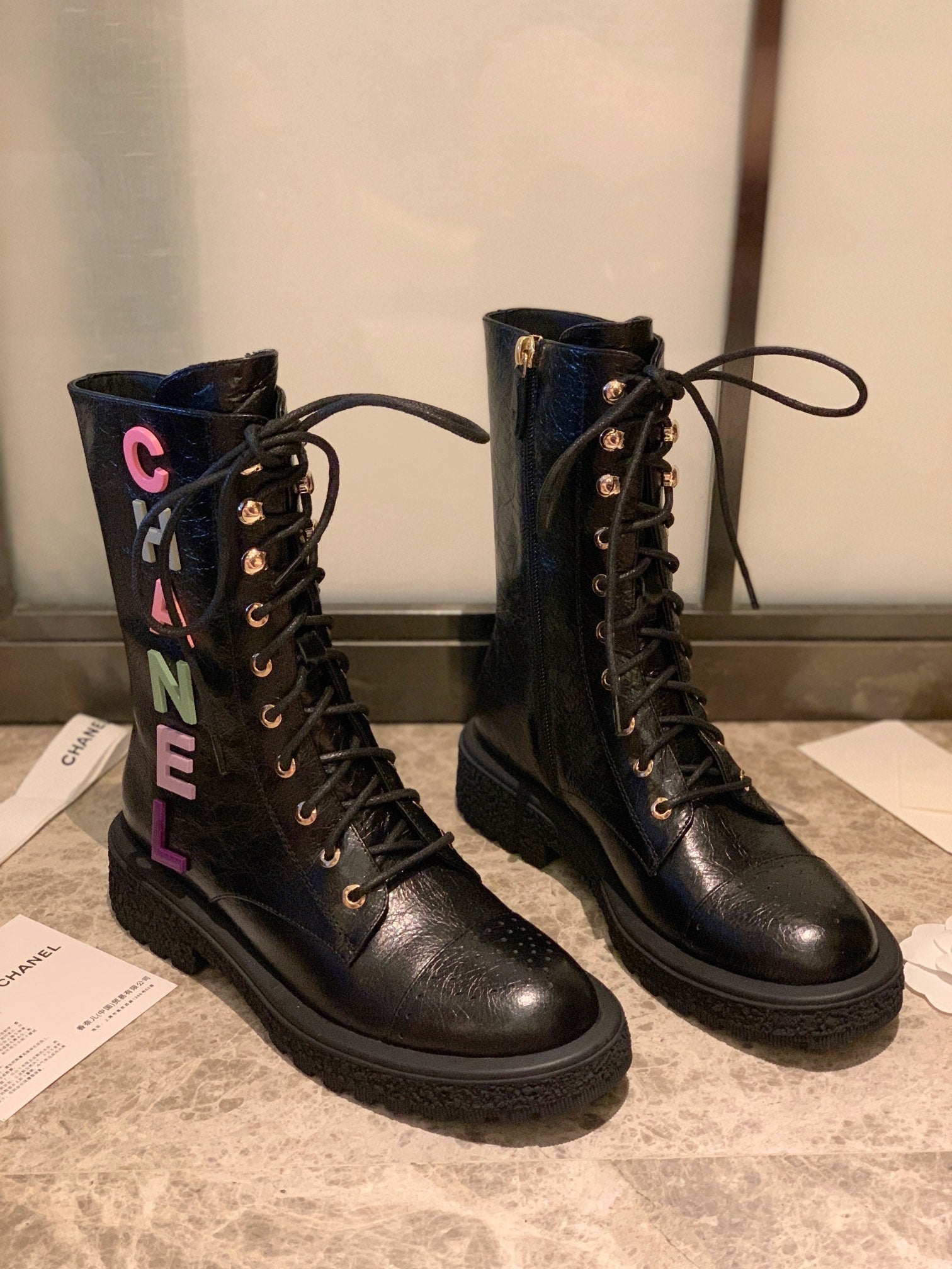 CC Short Boots 40mm In Black Wrinkled Calfskin 940068