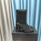 CC Short Boots 80mm Black Wool Fabric And Lambskin