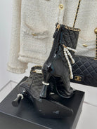 CC Short Boots 80mm Glossy Black Wrinkled Quilted Calfskin