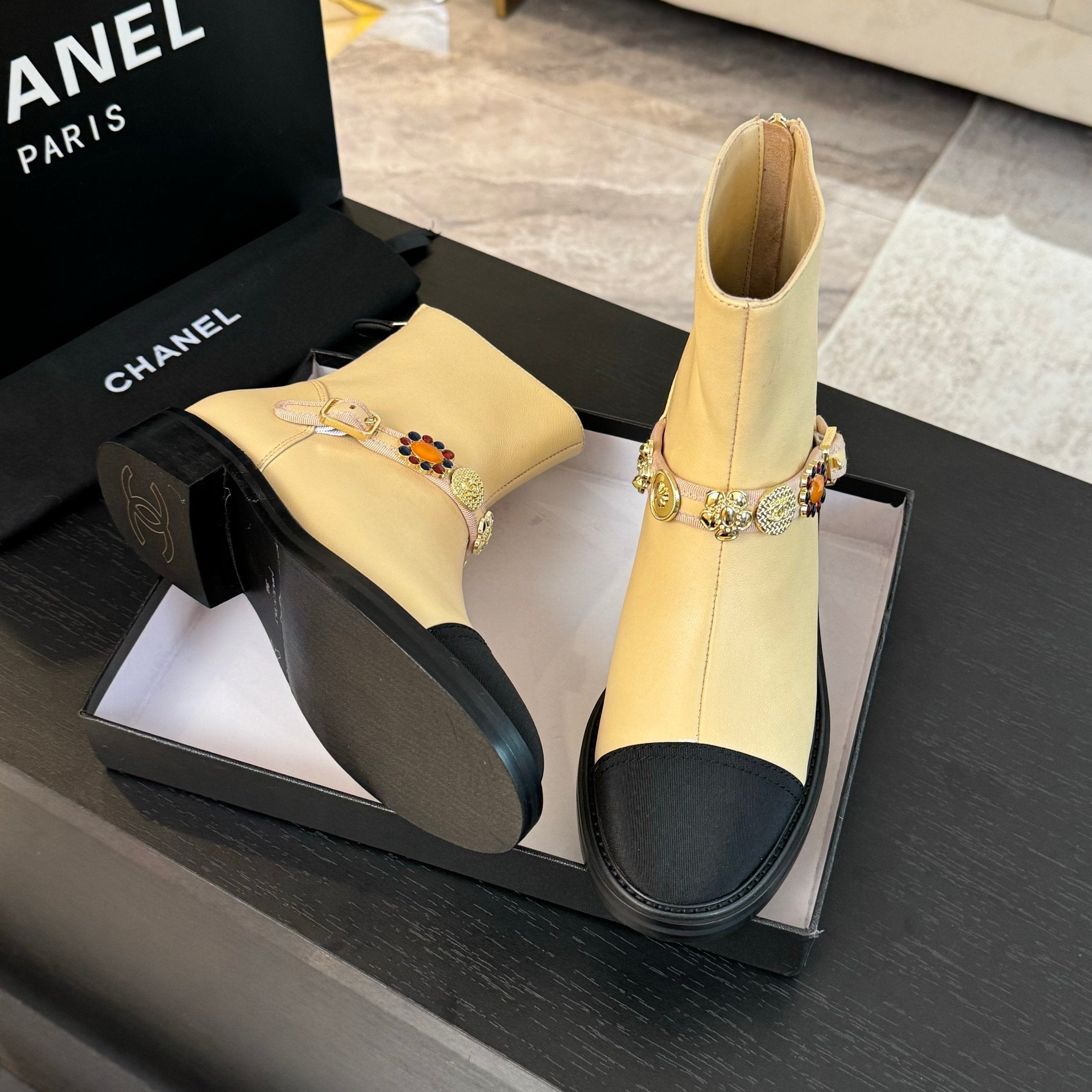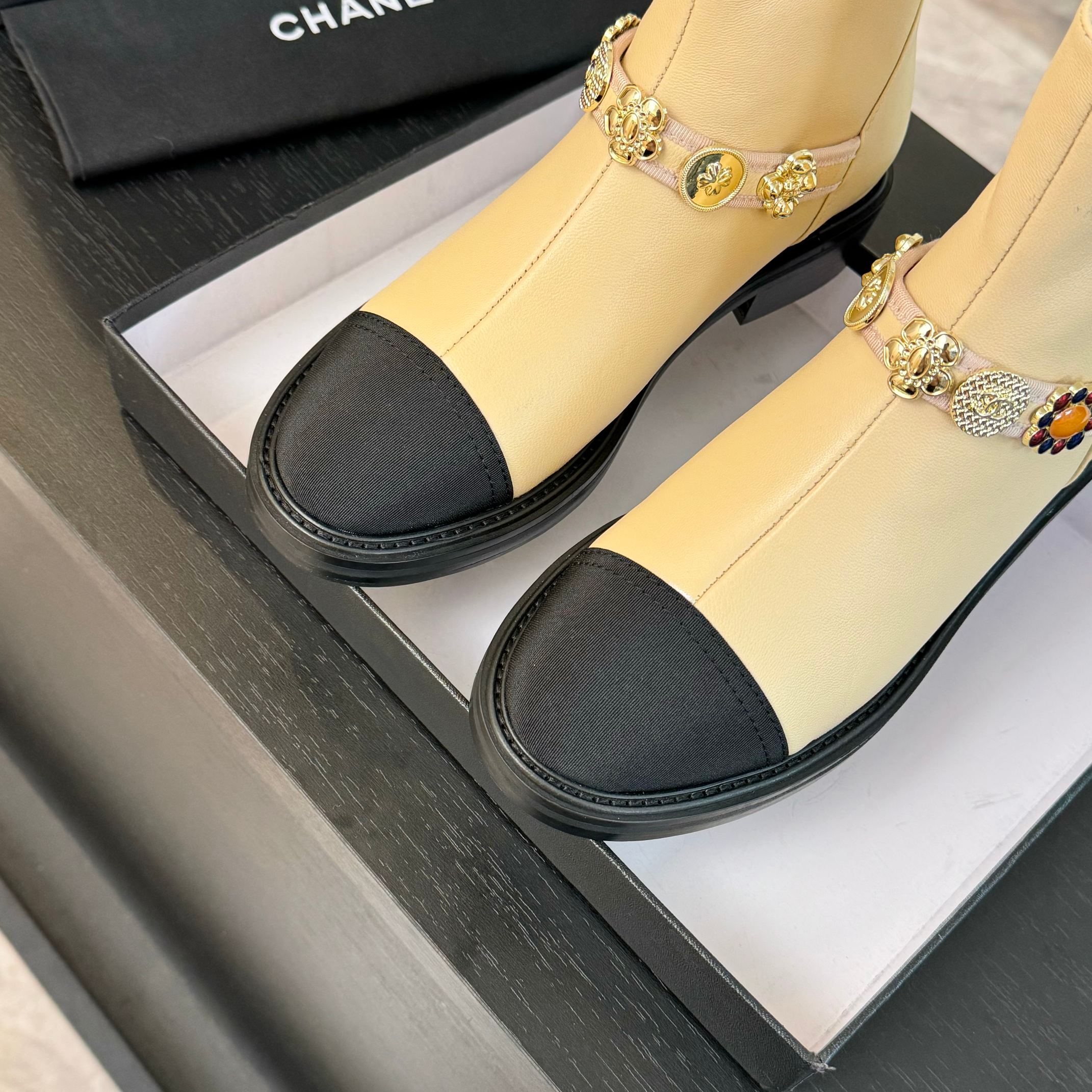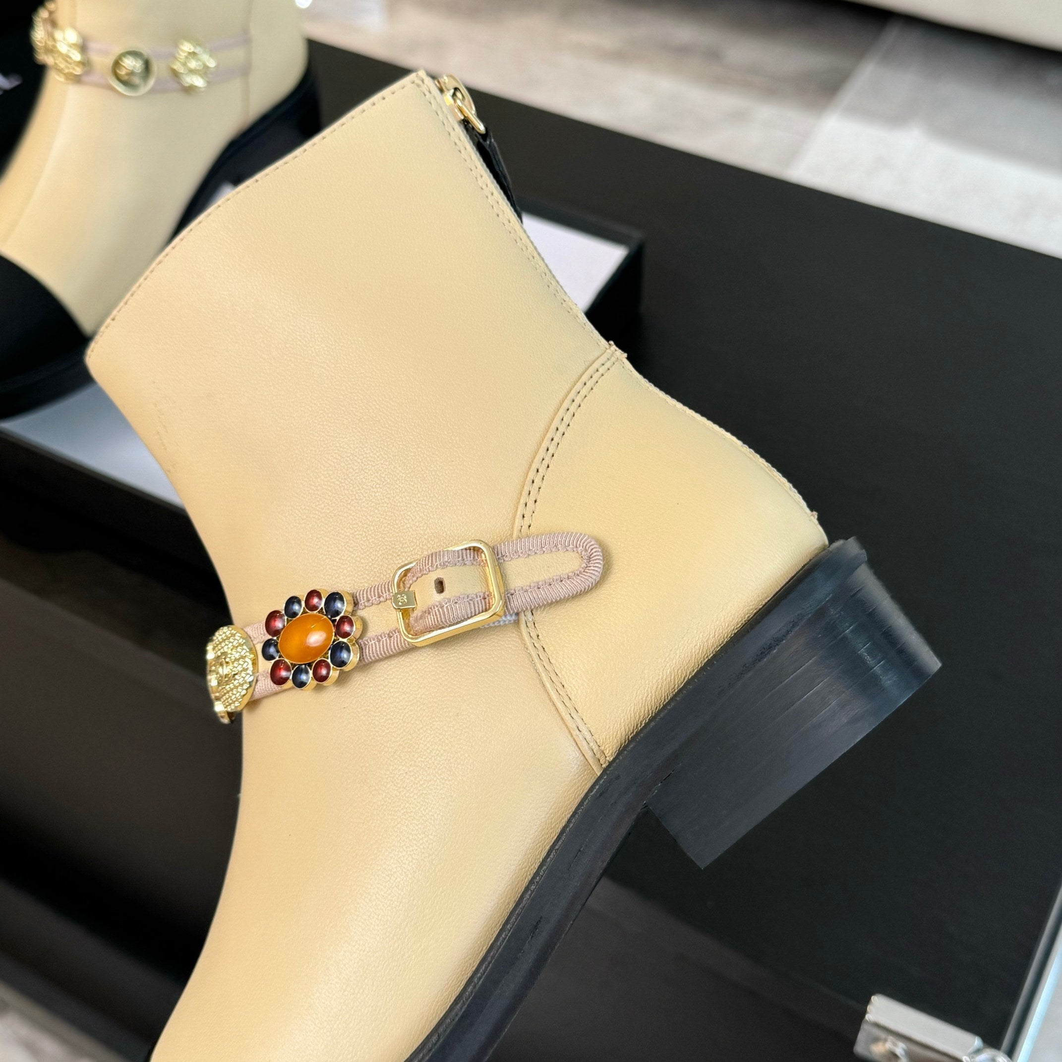 CC Short boots Beige Cowhide Mix Fabric Denim
