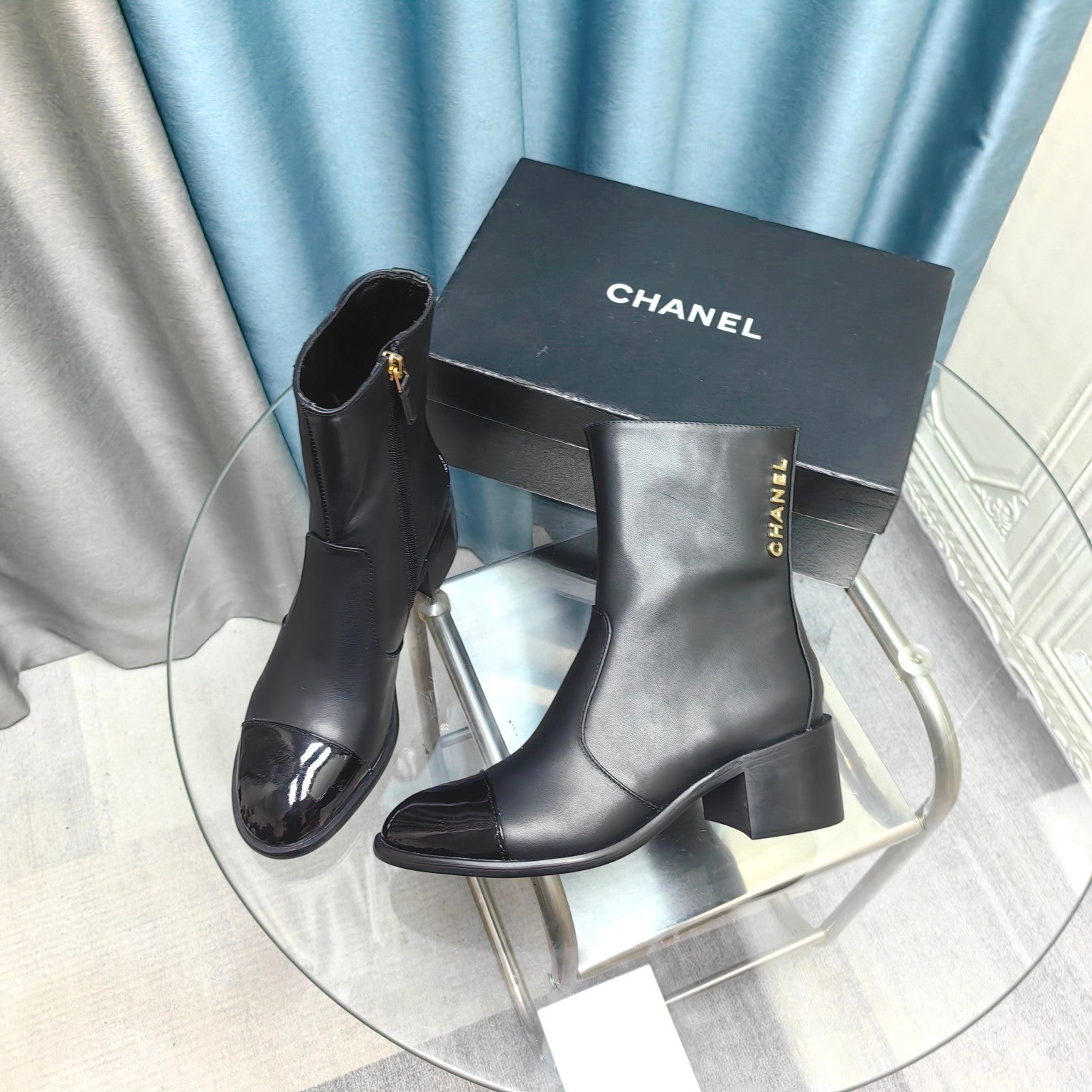 CC Short Boots Black Calfskin And Lambskin