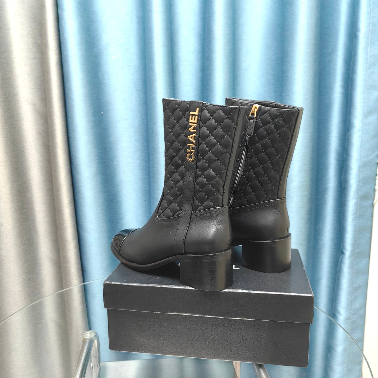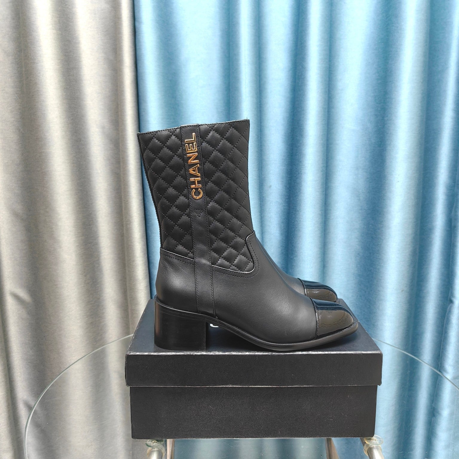 CC Short Boots Black Quilted Cowhide And Lambskin