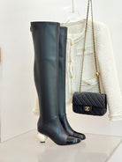 Chanel 25 Double C Giant Pearl Heel Long Boot Black White Sheepskin 465413