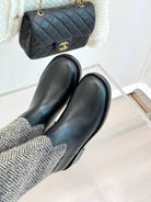 Chanel 25 Four-Leaf Clover Pearls Double C Long Boots Black Grey Woven Sheepskin 465406