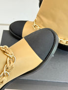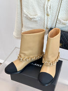 Chanel 25 Large Chain Flat-solved Boot Beige Black Lambskin 465421