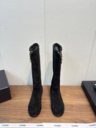 Chanel 25 Long Boot Black Suede 465615