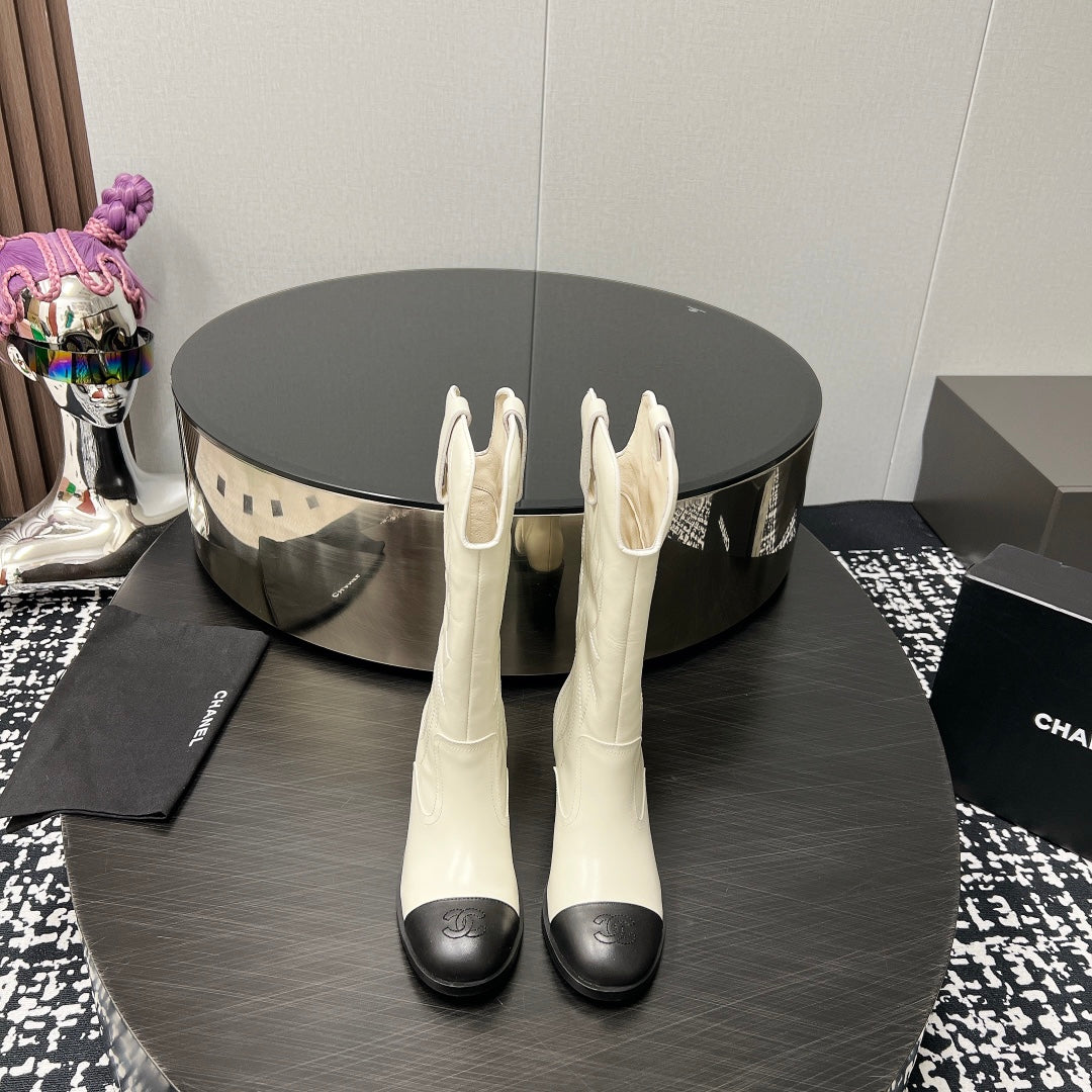 CC High Boot 5.5cm White Black Calfskin