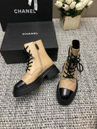 SHORT BOOTS BEIGE CREAM MIX BLACK SUEDE LAMBSKIN
