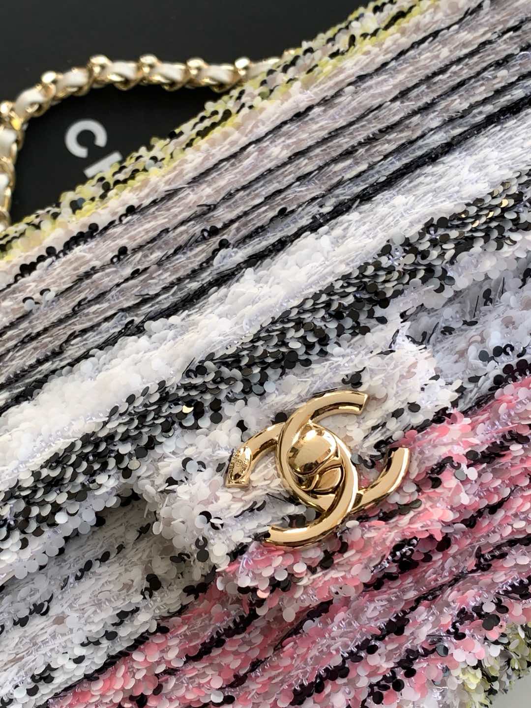 CC 24S Flap Bag Mini 21cm Multicolor Sequin Gold Hardware 238437