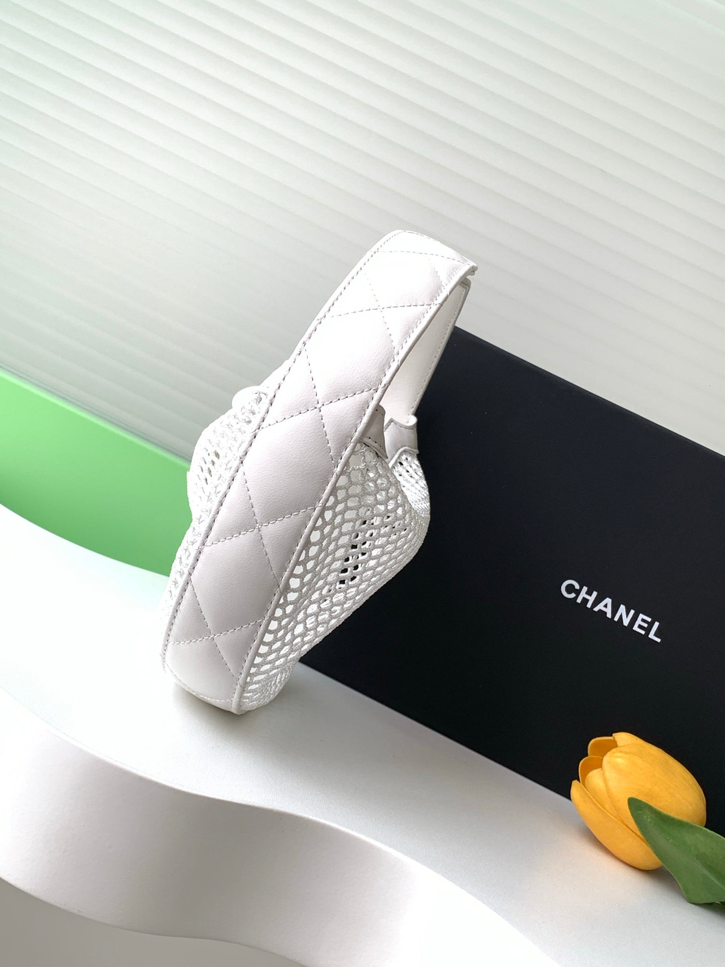 CC 25S Pouch Bag 17cm White Mesh Calfskin