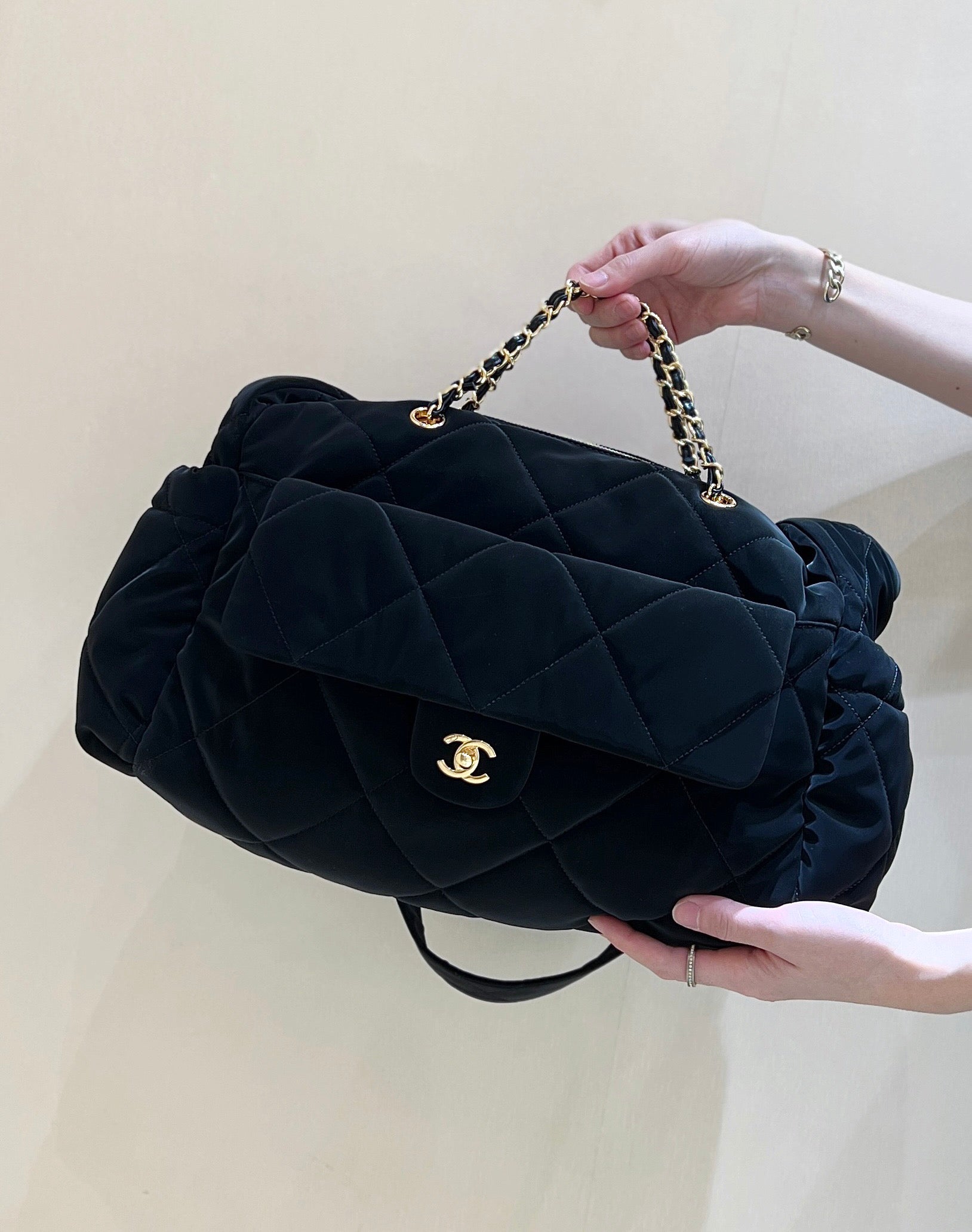 Chanel 24N coconeige ski bag black velvet 256069