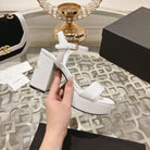CC 25C 10CM Mid Heed Sandals White Italian Leather 213319