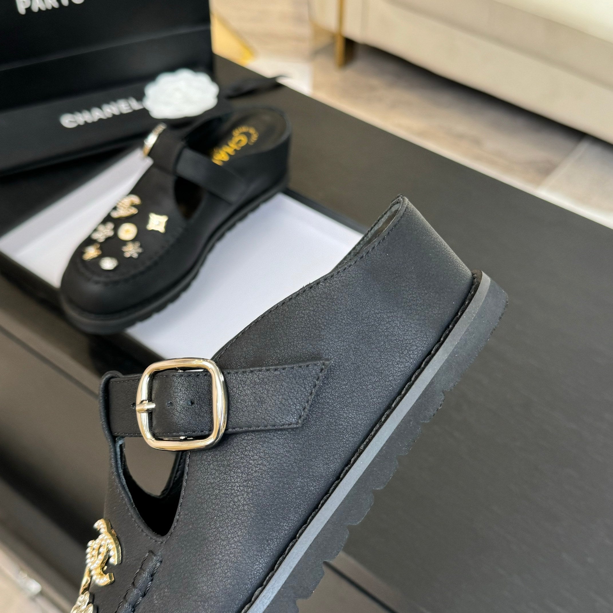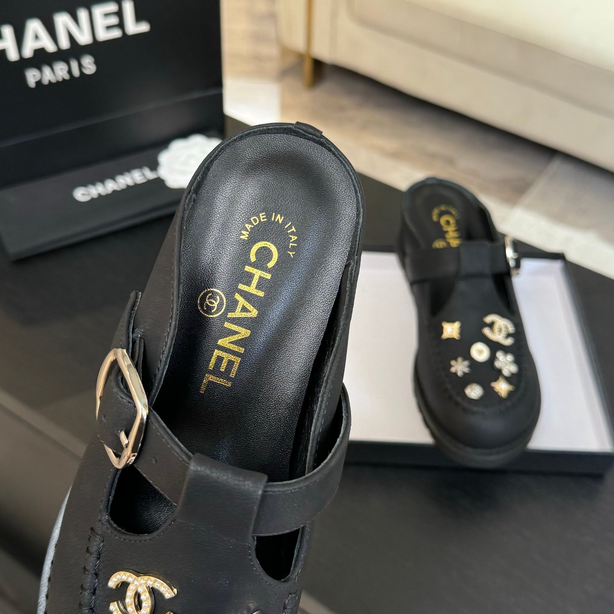 CC 25C Mule Sandal Black Imported Cowhide 212946
