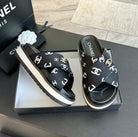 cc cross sandal mule black lambskin multi logo