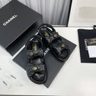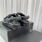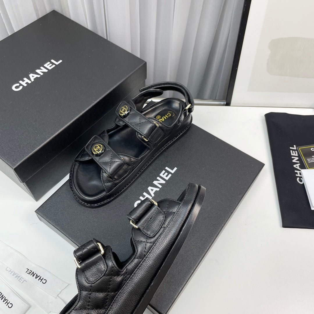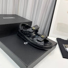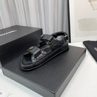 cc dad sandals black grained calfskin enamel logo