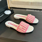 cc mule sandal striped pink beige satin fabric