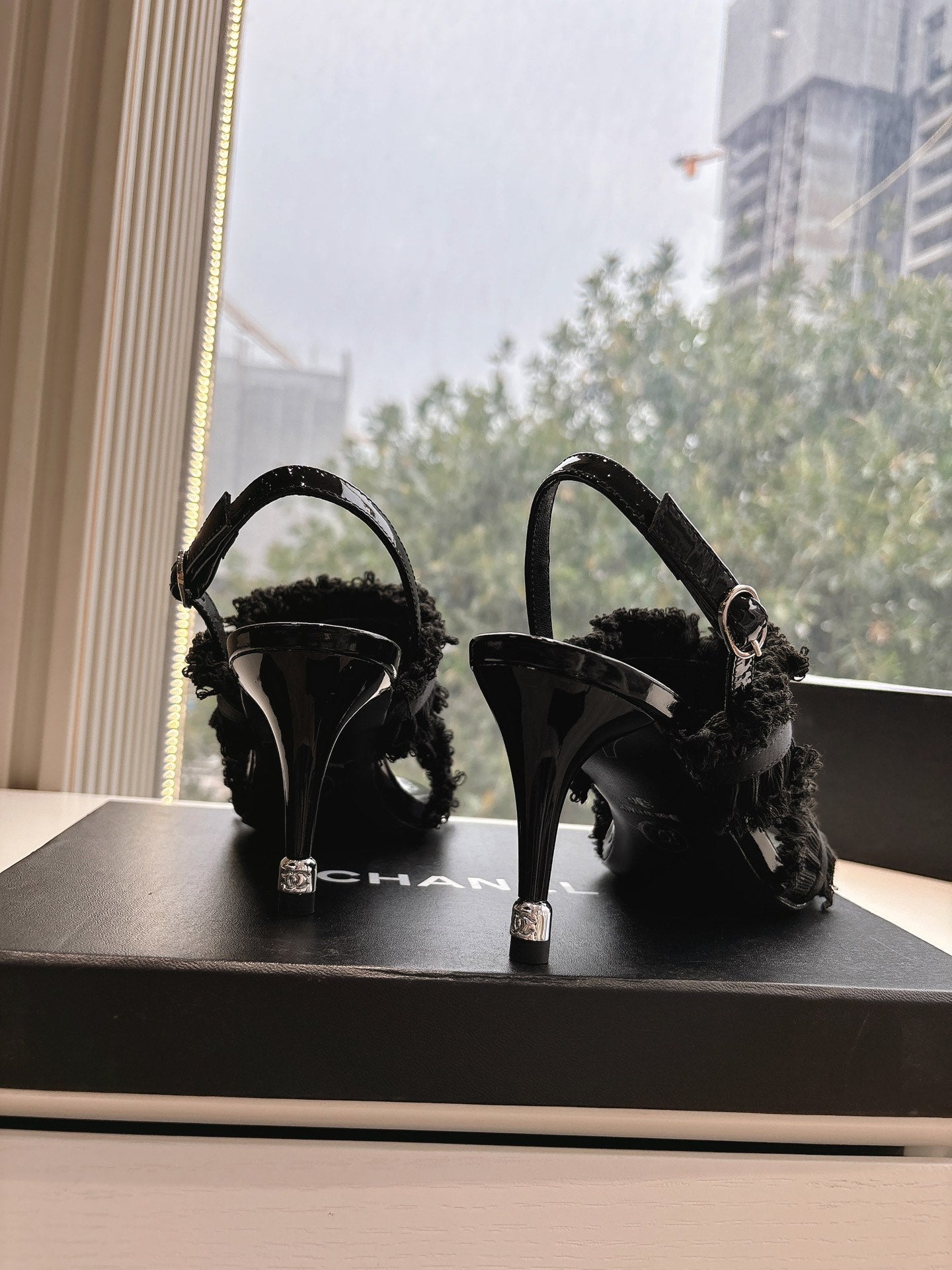 CC Sandals with bow tie Black 7cm Lambskin 202870
