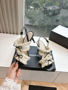 CC Sandals with bow tie Cream 7cm Lambskin 202868