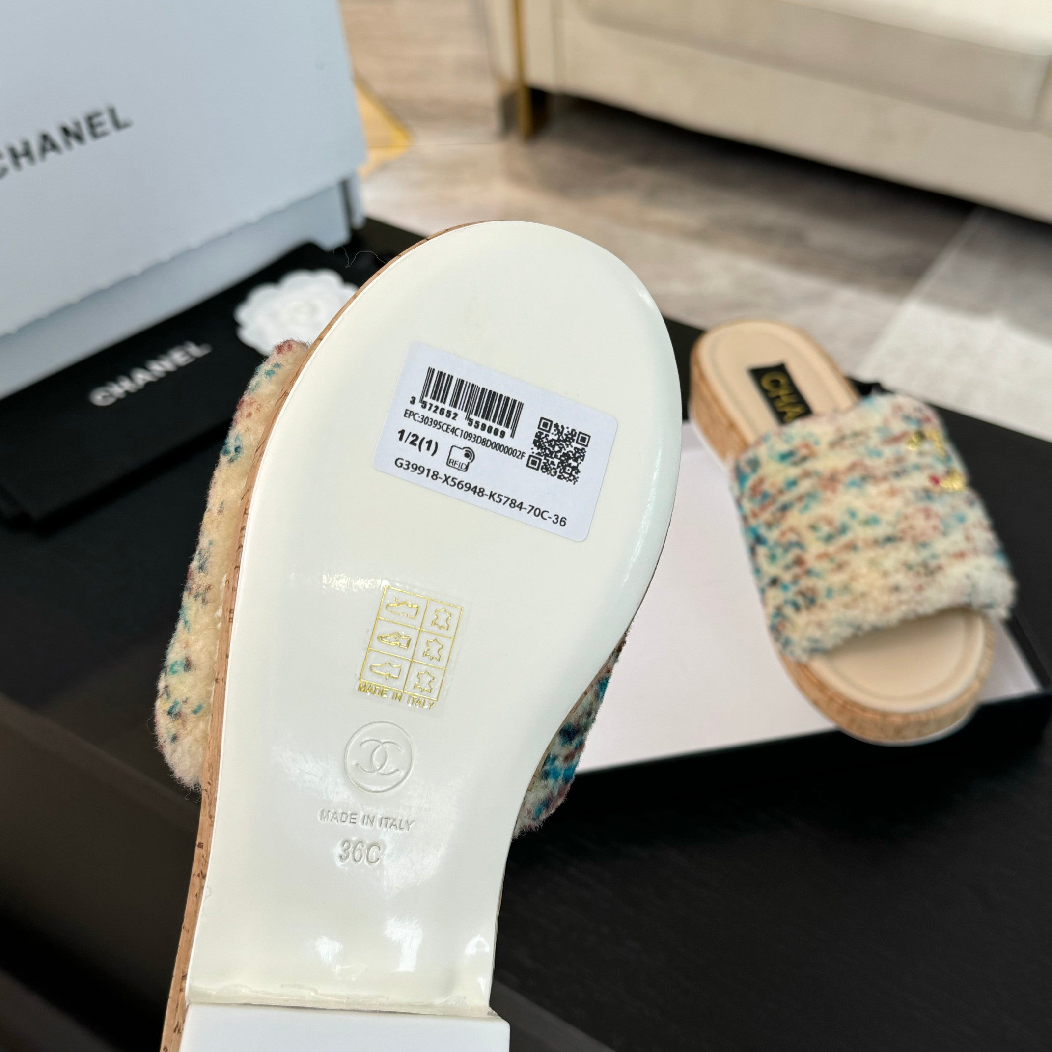 CC Slippers Beige Mix Blue Red Wool And Calfskin
