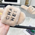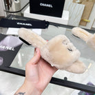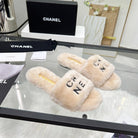 CC Slippers Beige With Black Lettering Fleece