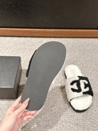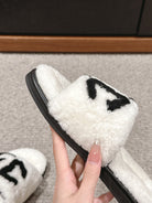 CC SLIPPERS IN WHITE MIX BLACK FLEECE