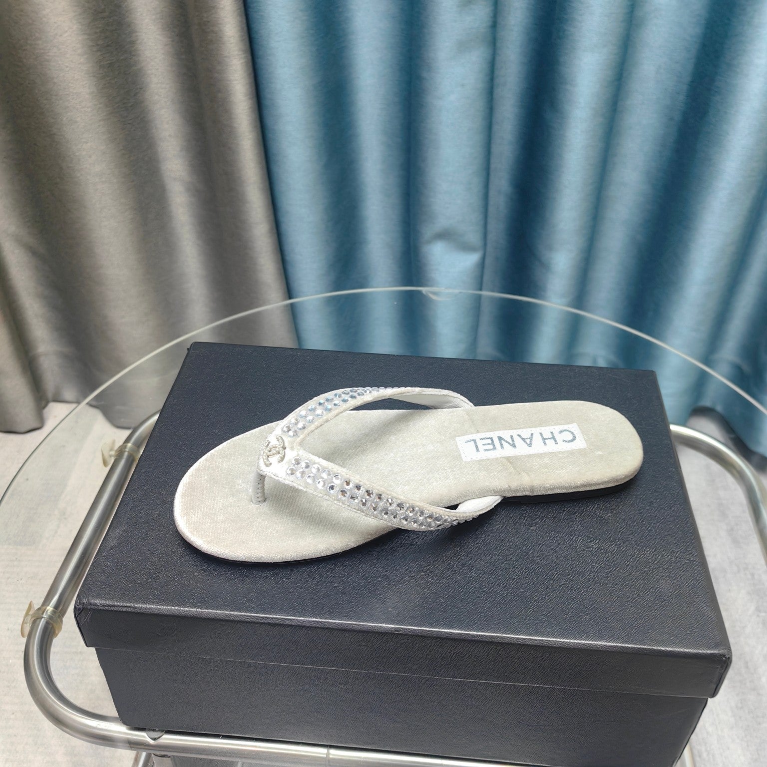 CC Thong Grey Velvet Silver Strass
