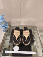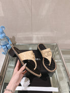 cc thong sandal 50 beige black quilted lambskin