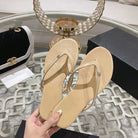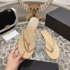 cc thongs beige silver calfskin silk