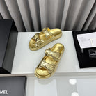 dad sandals gold metalic lambskin mules
