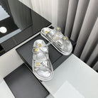 dad sandals silver metalic lambskin mules