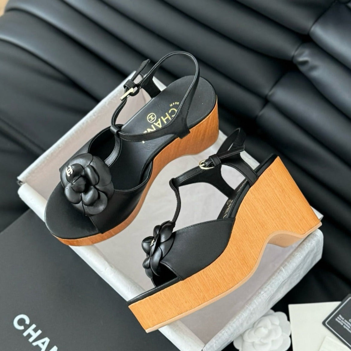 slingbacks sandal platform black flower calfskin