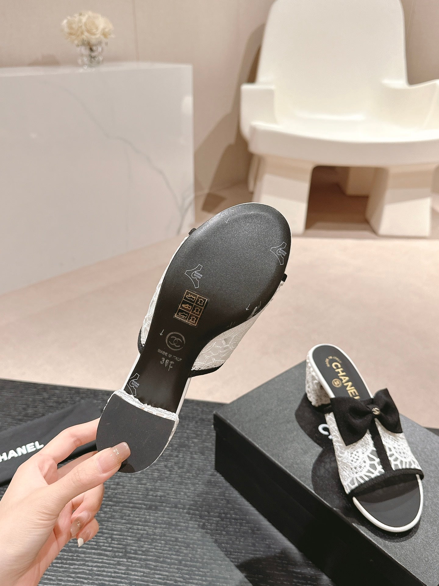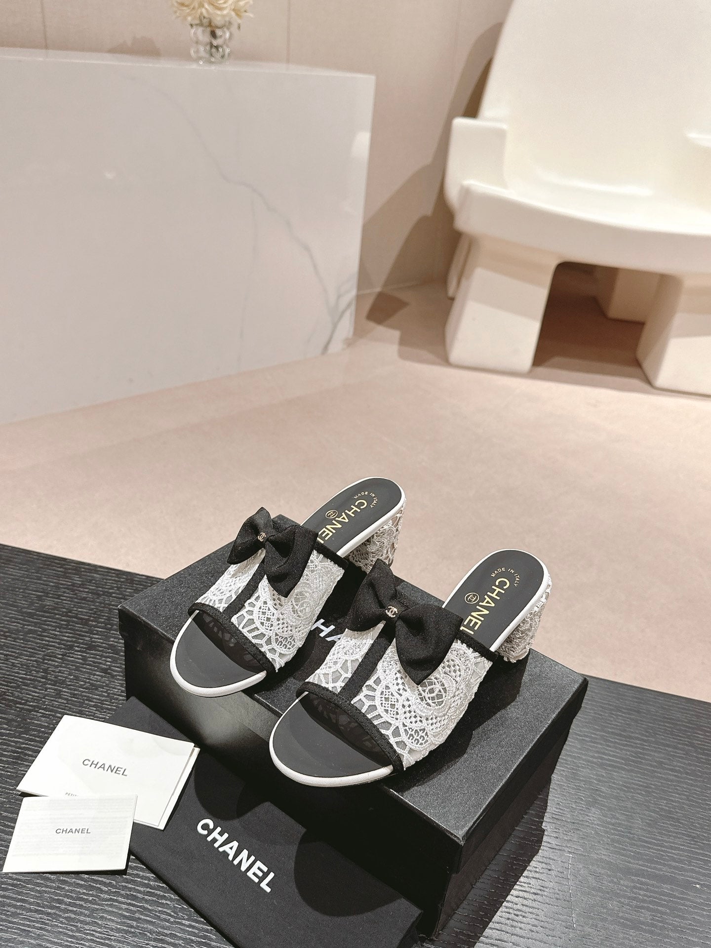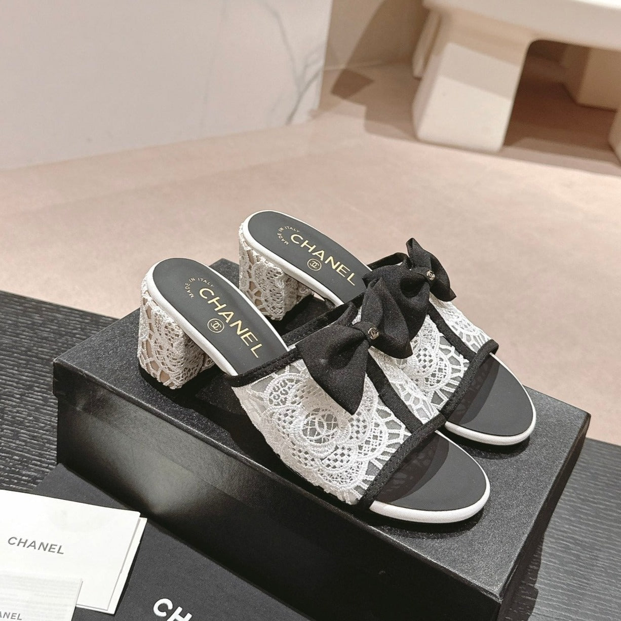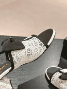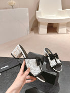mule sandal 60 bowtie white lacce fabric