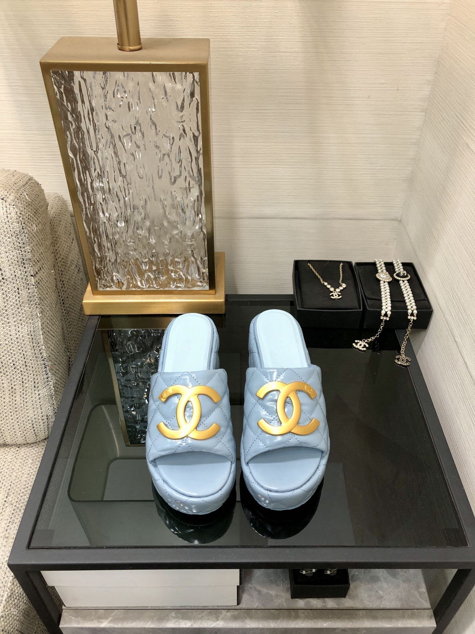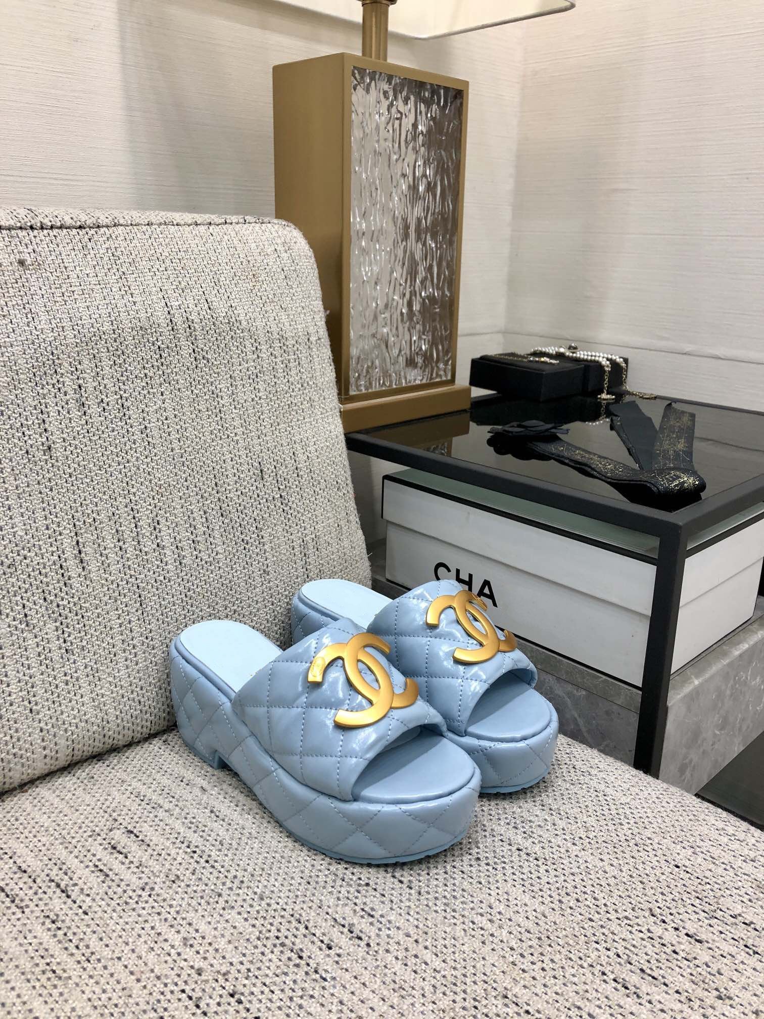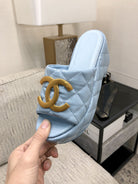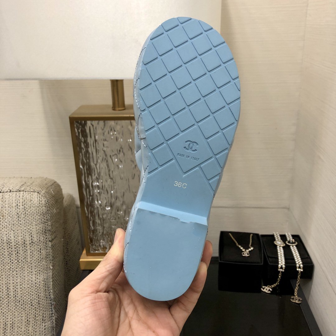 mule sandal 95 cloud blue quilted waxed leather