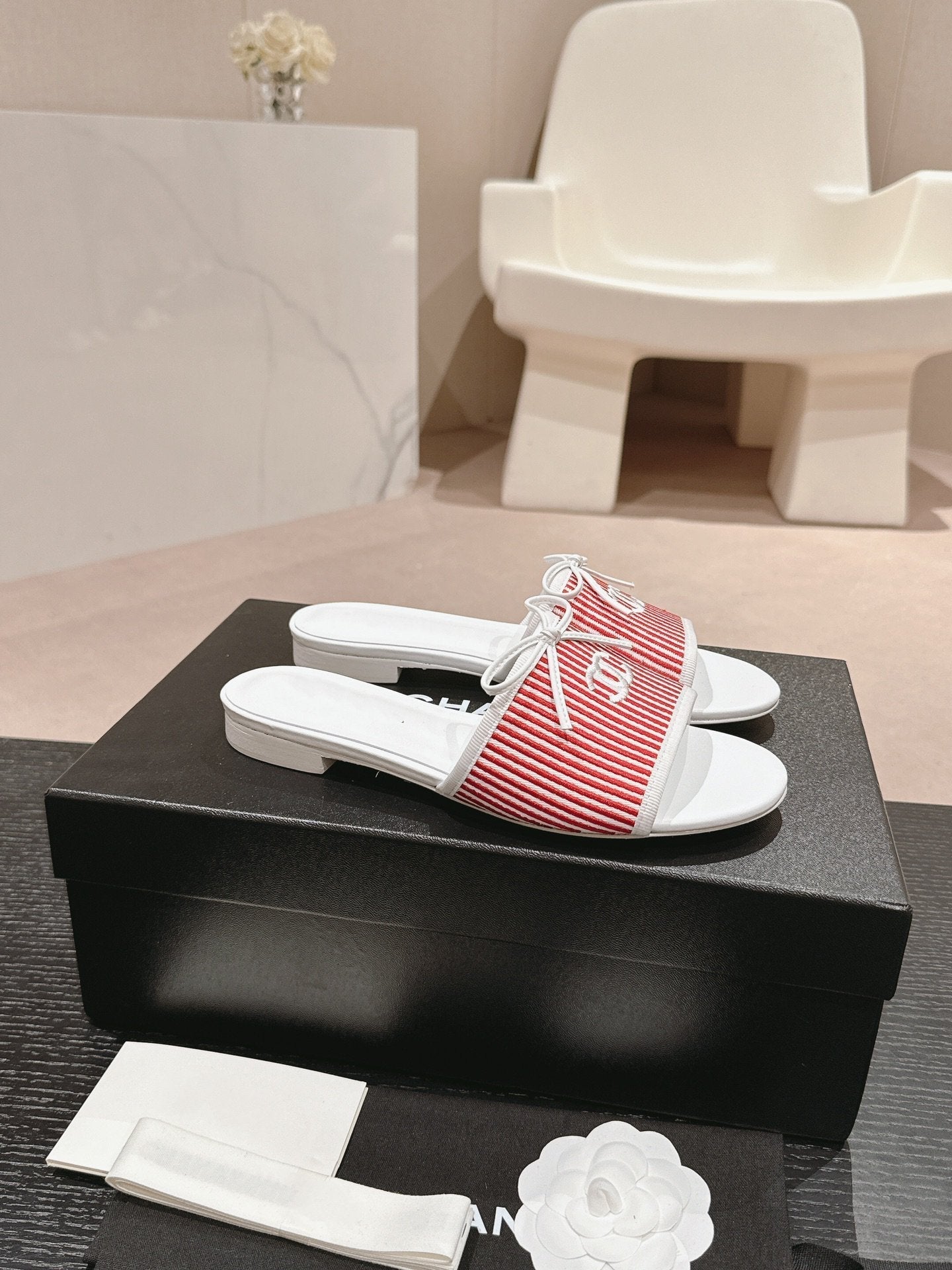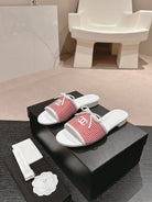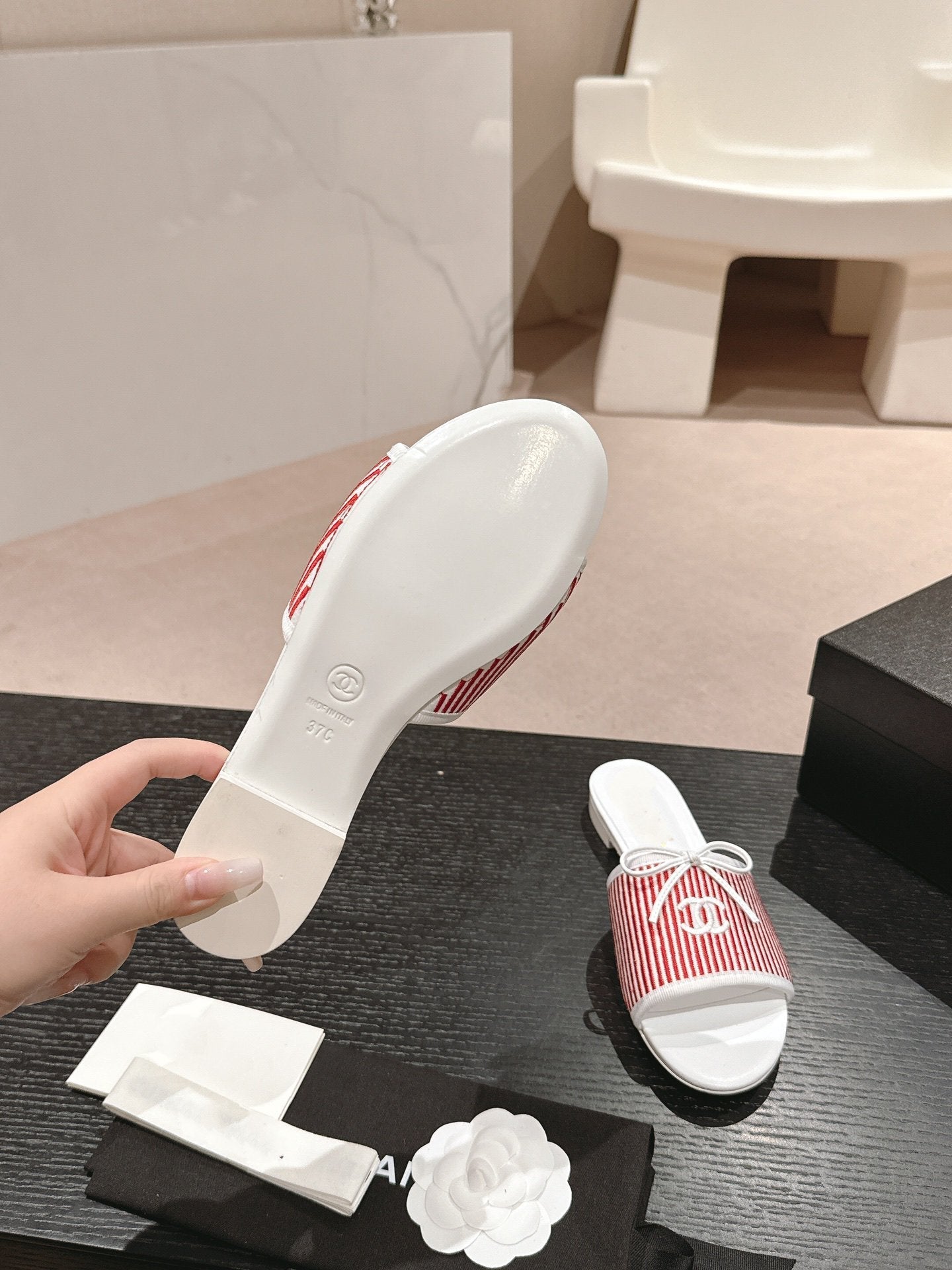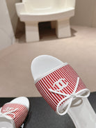 mule sandal striped red white canvas calfskin
