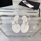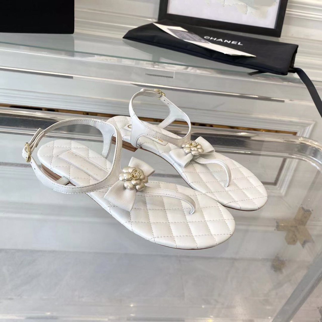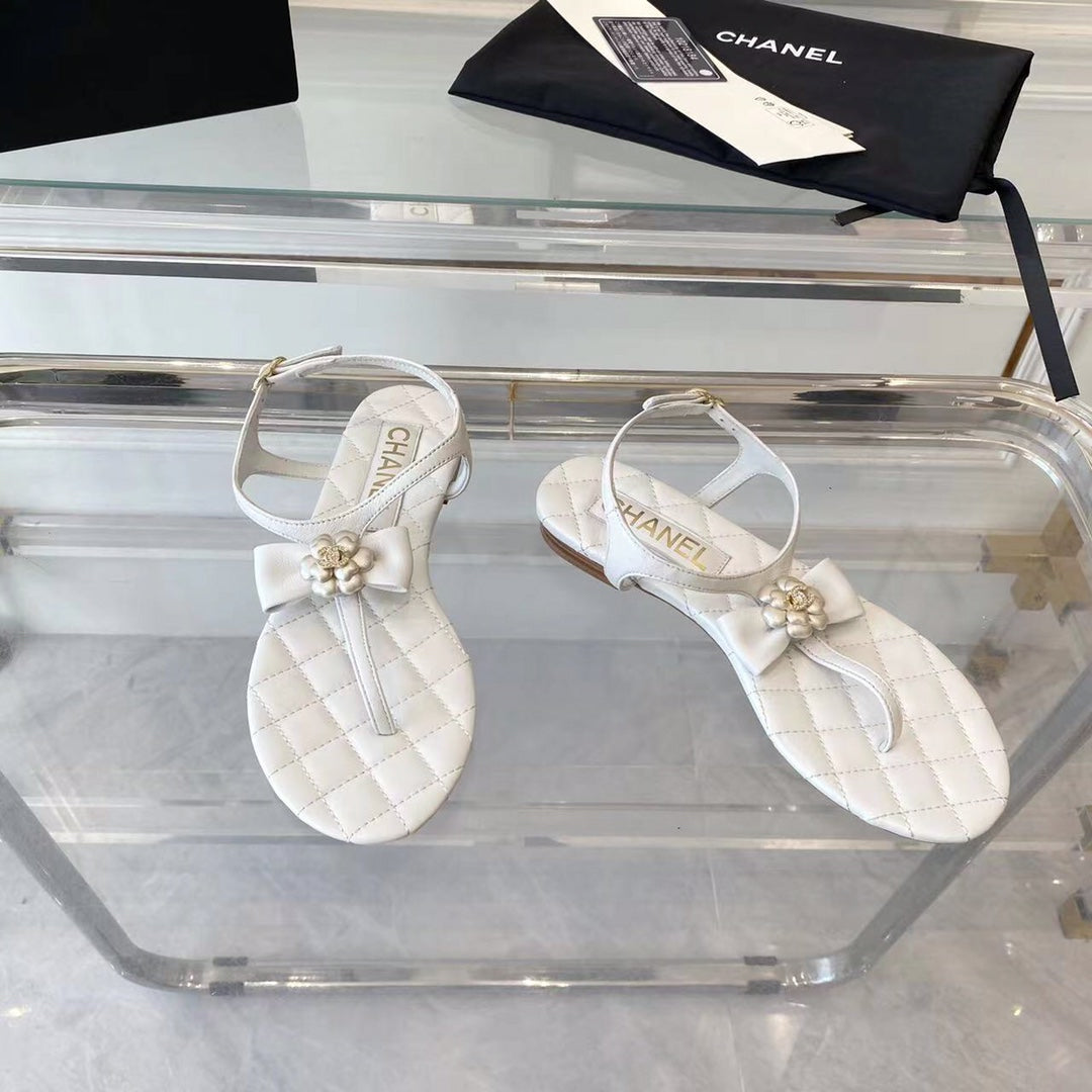 sandal white quilted lambskin flower cc