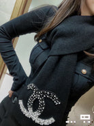 CC Rhinestone-Embellished Shawl 180 CM In Black Cashmere Wool 363687