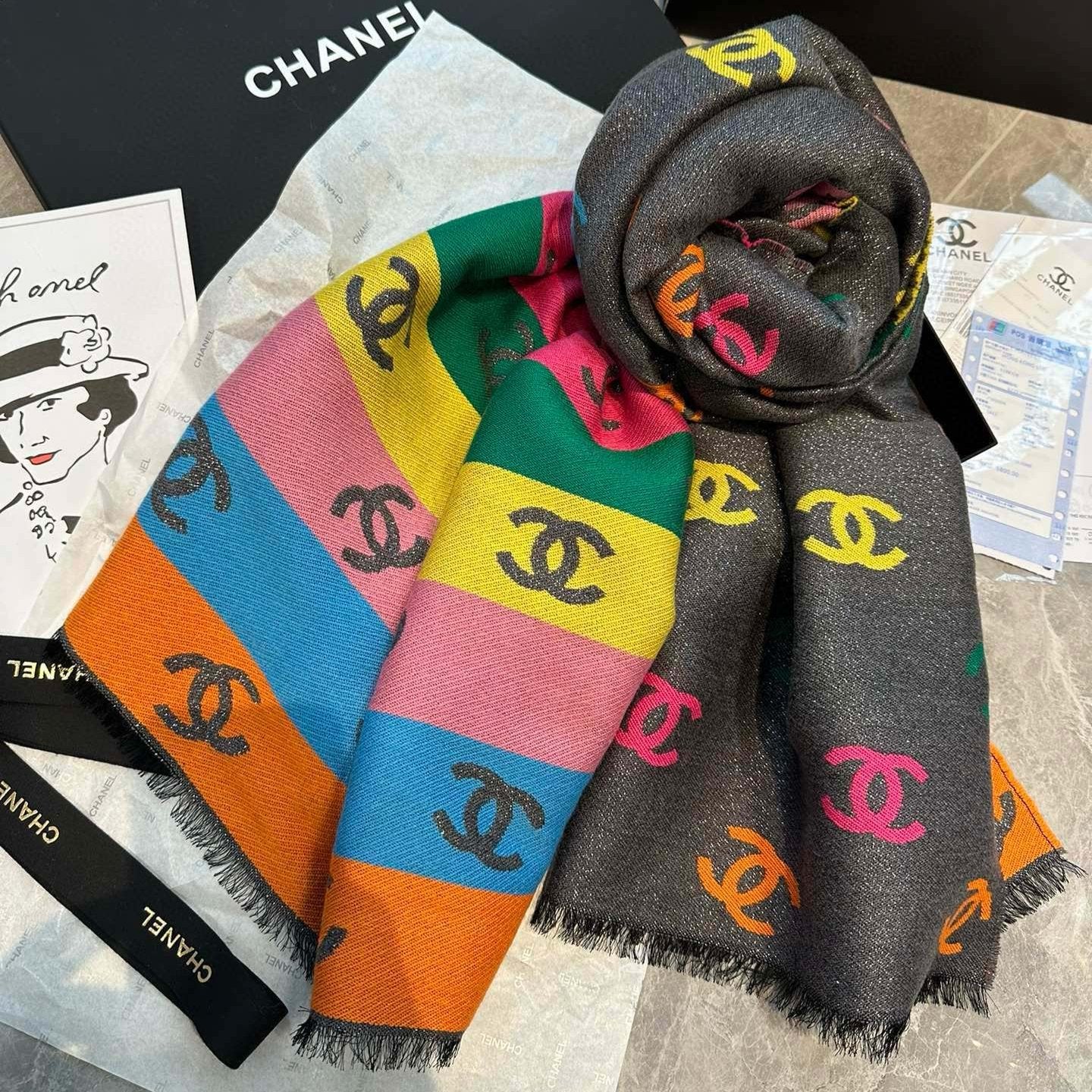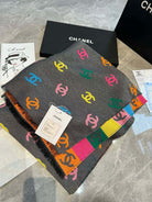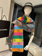 CC Scarf 180 CM In Black Mix Rainbow Cashmere And Wool Mix Mulberry Silk 401988