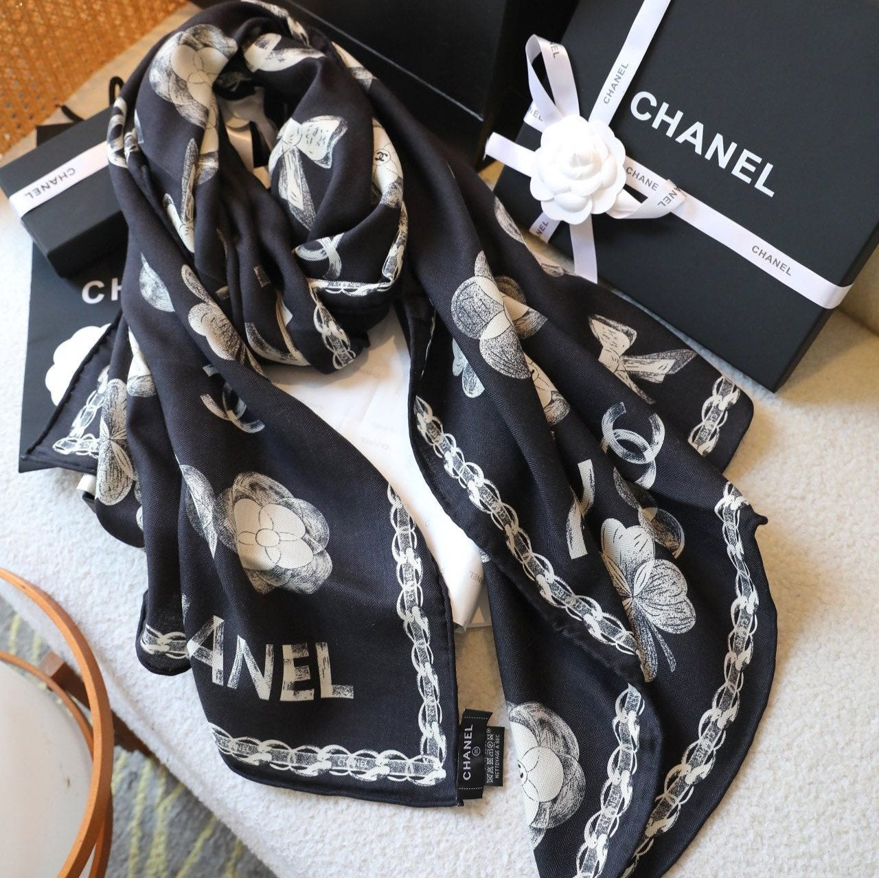 CC Scarf 180 CM In Black White Cashmere Silk 401134