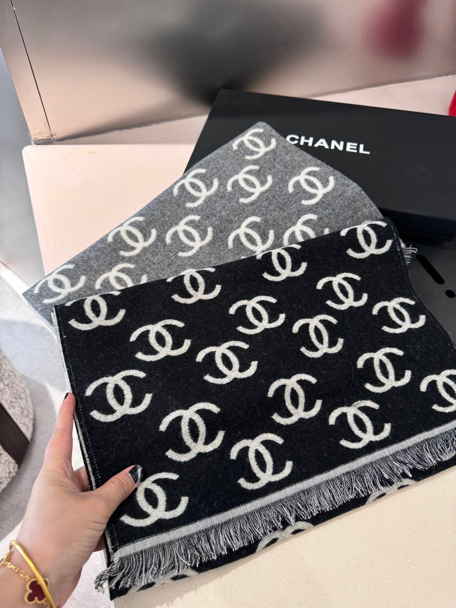CC Scarf 180 CM In Dark Grey Mix Light Grey Print Logo Wool And Cashmere 359268