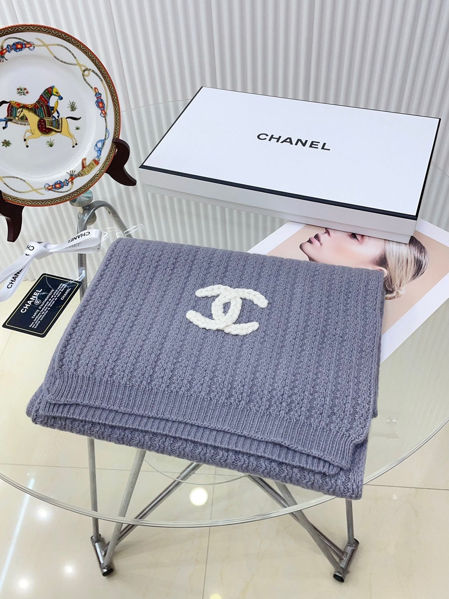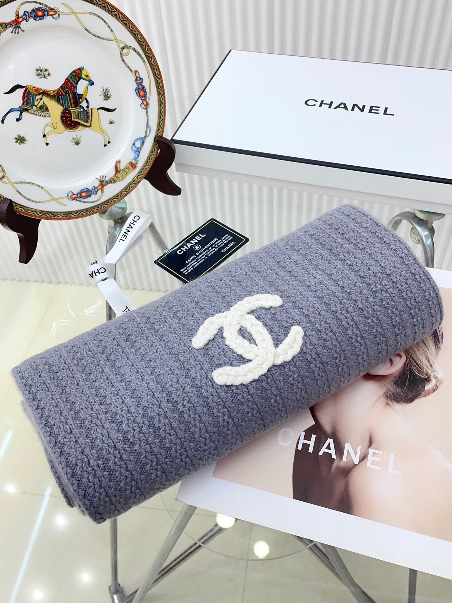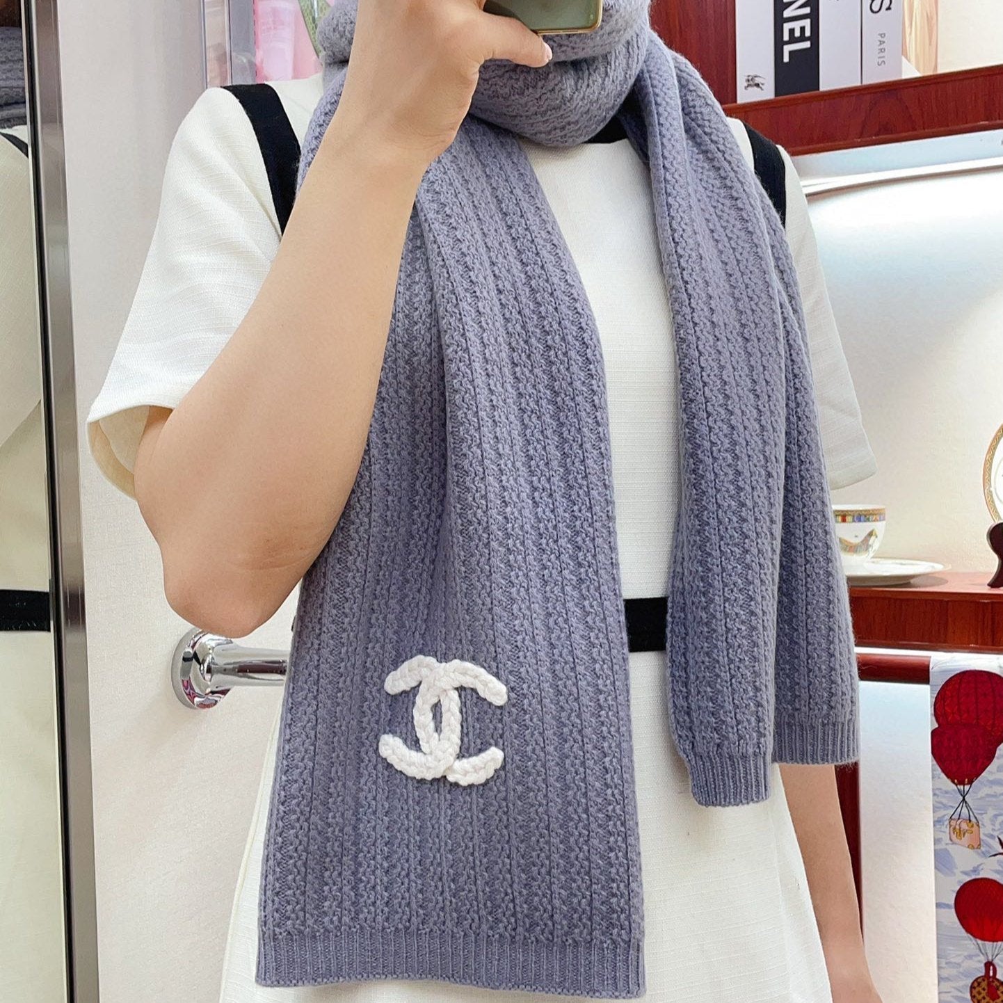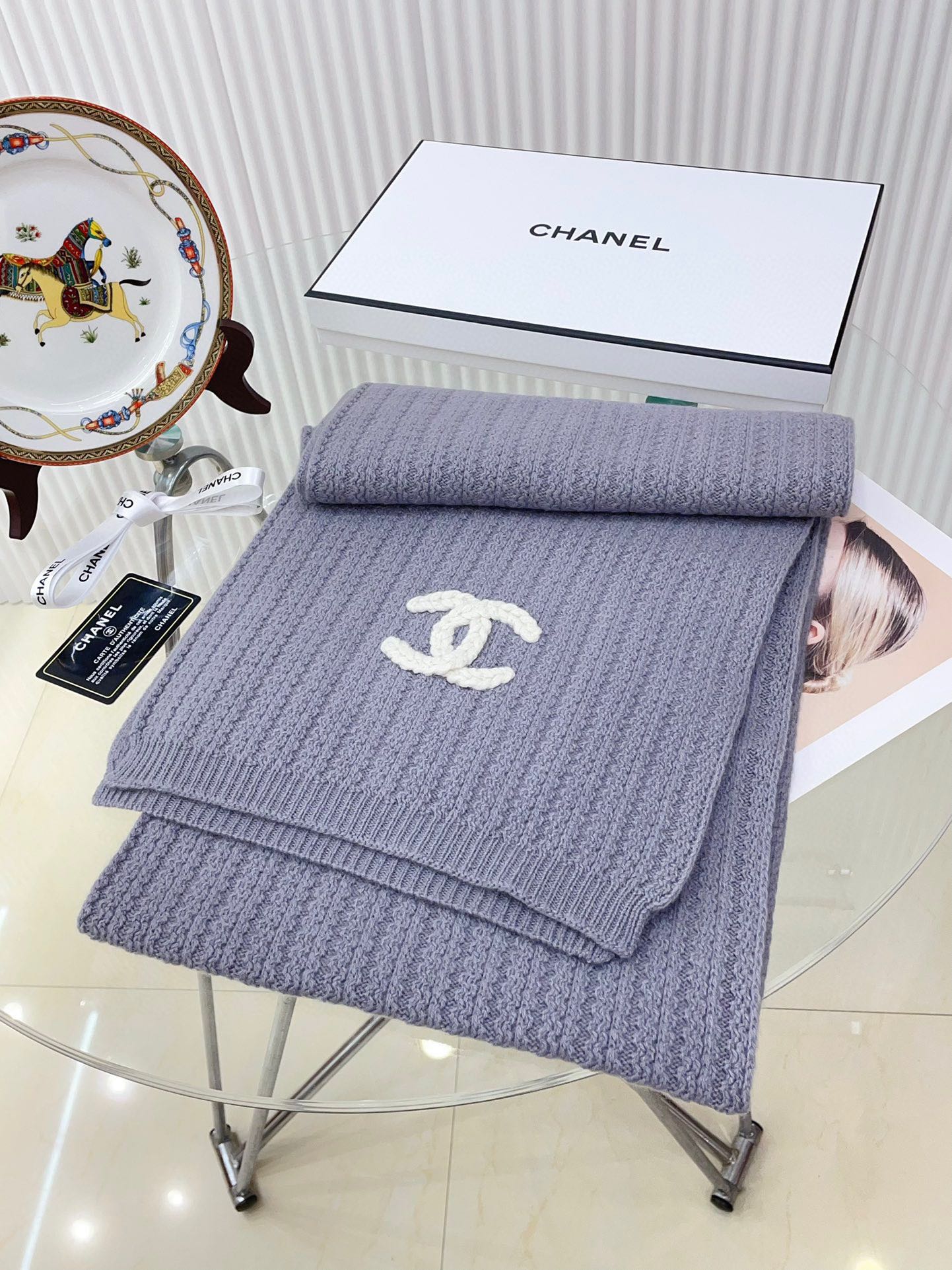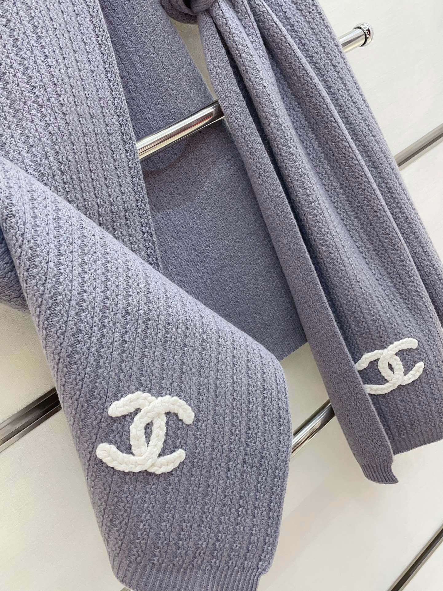 CC Scarf 180 CM In Grey Purple Wool 378472