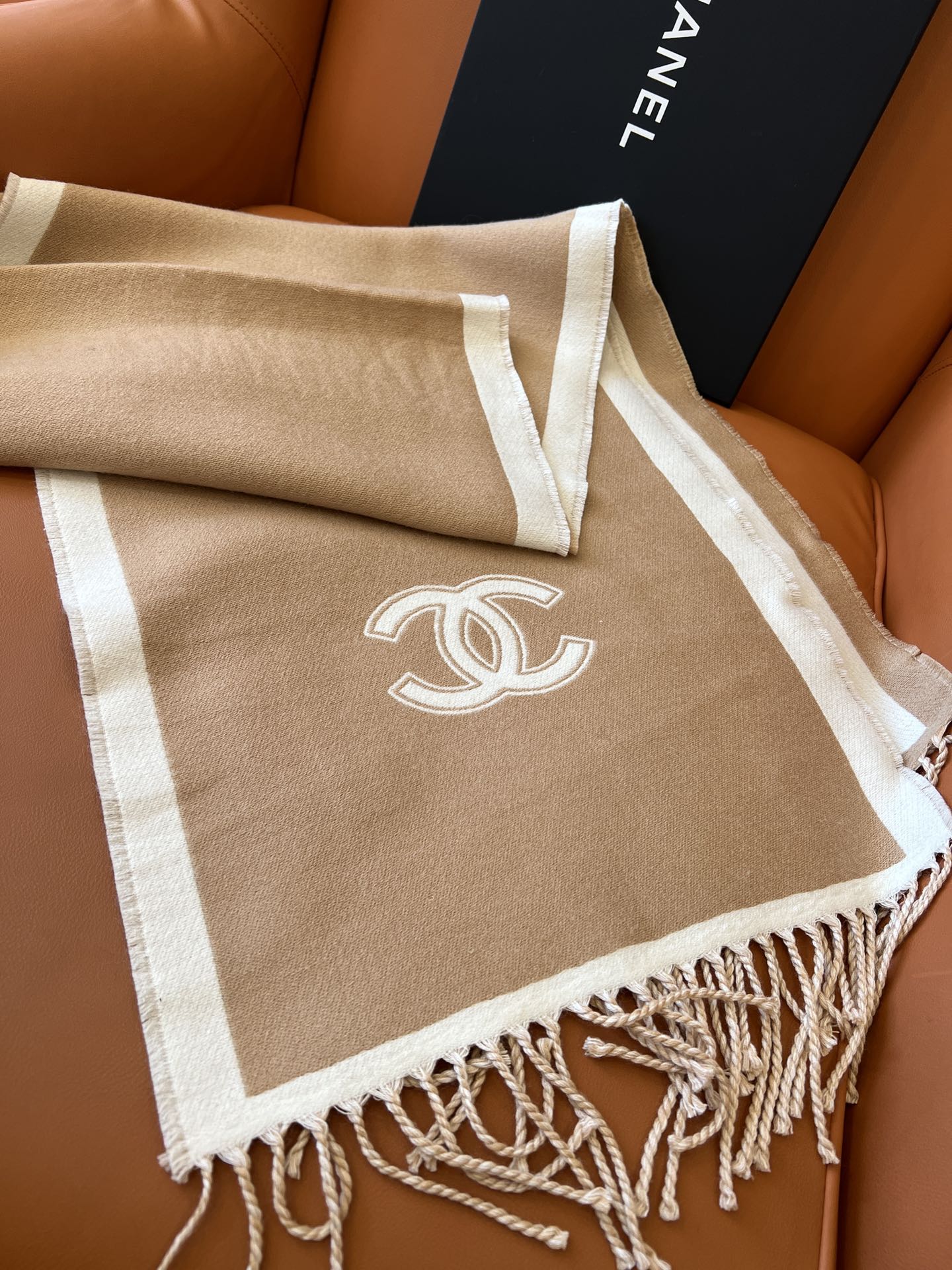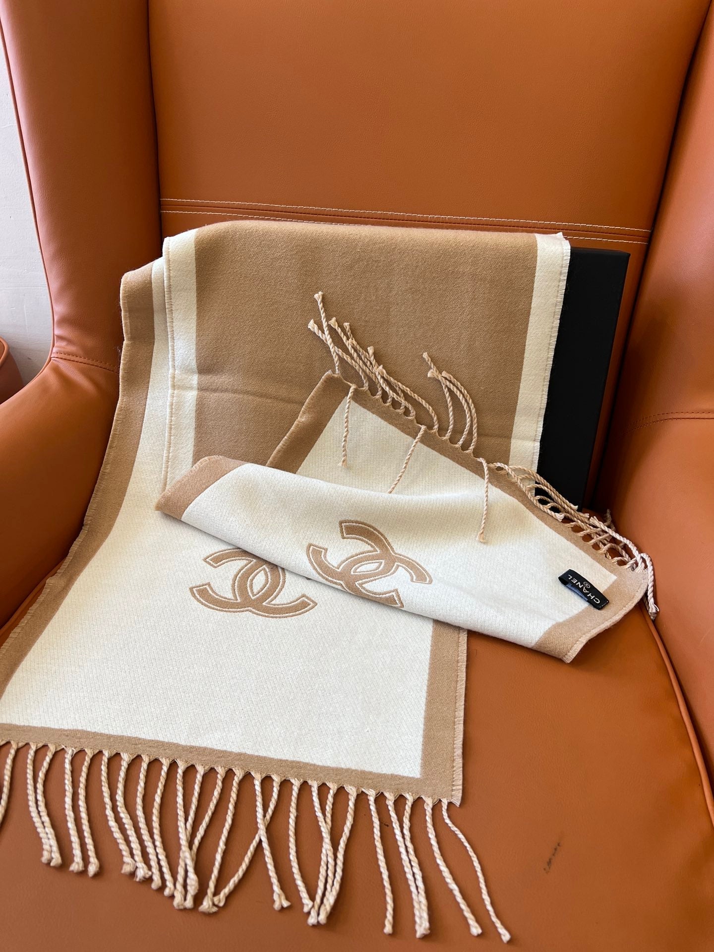 CC Scarf 184 CM In White Mix Brown Wool Fleece 385536