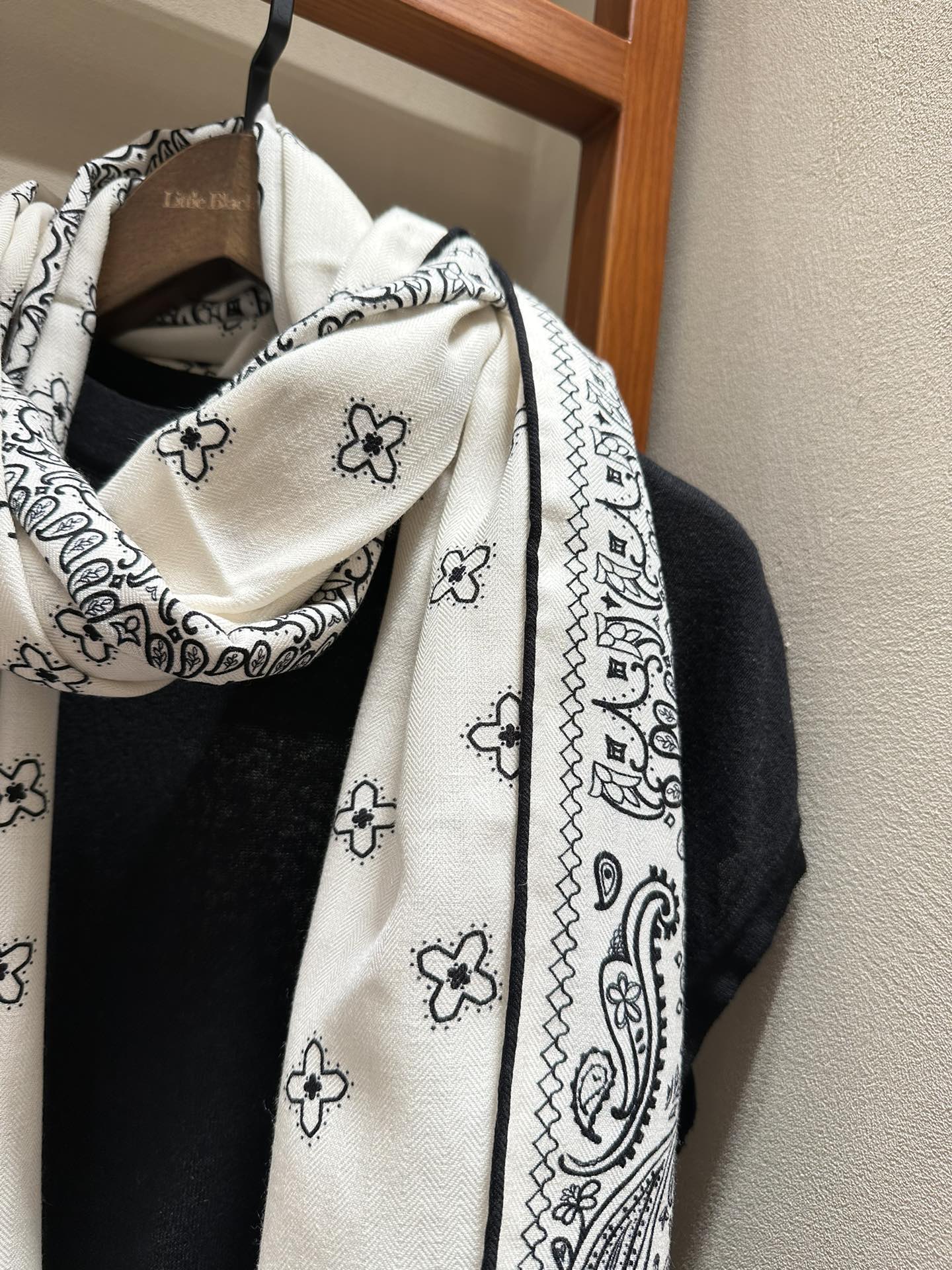 CC Scarf 185 CM In White Black Cashmere Silk 371904