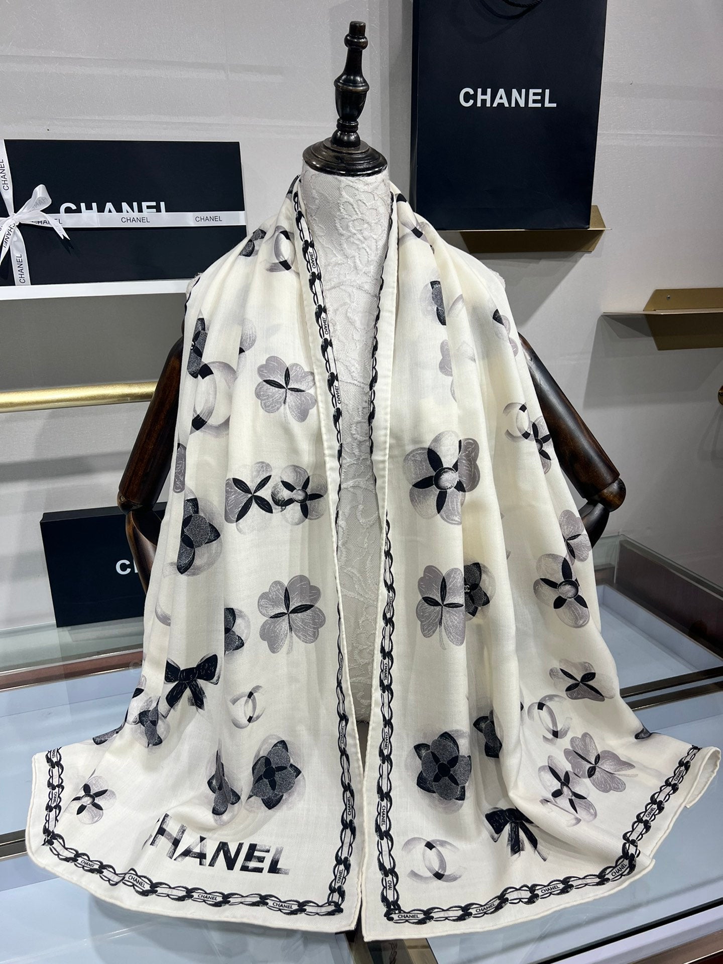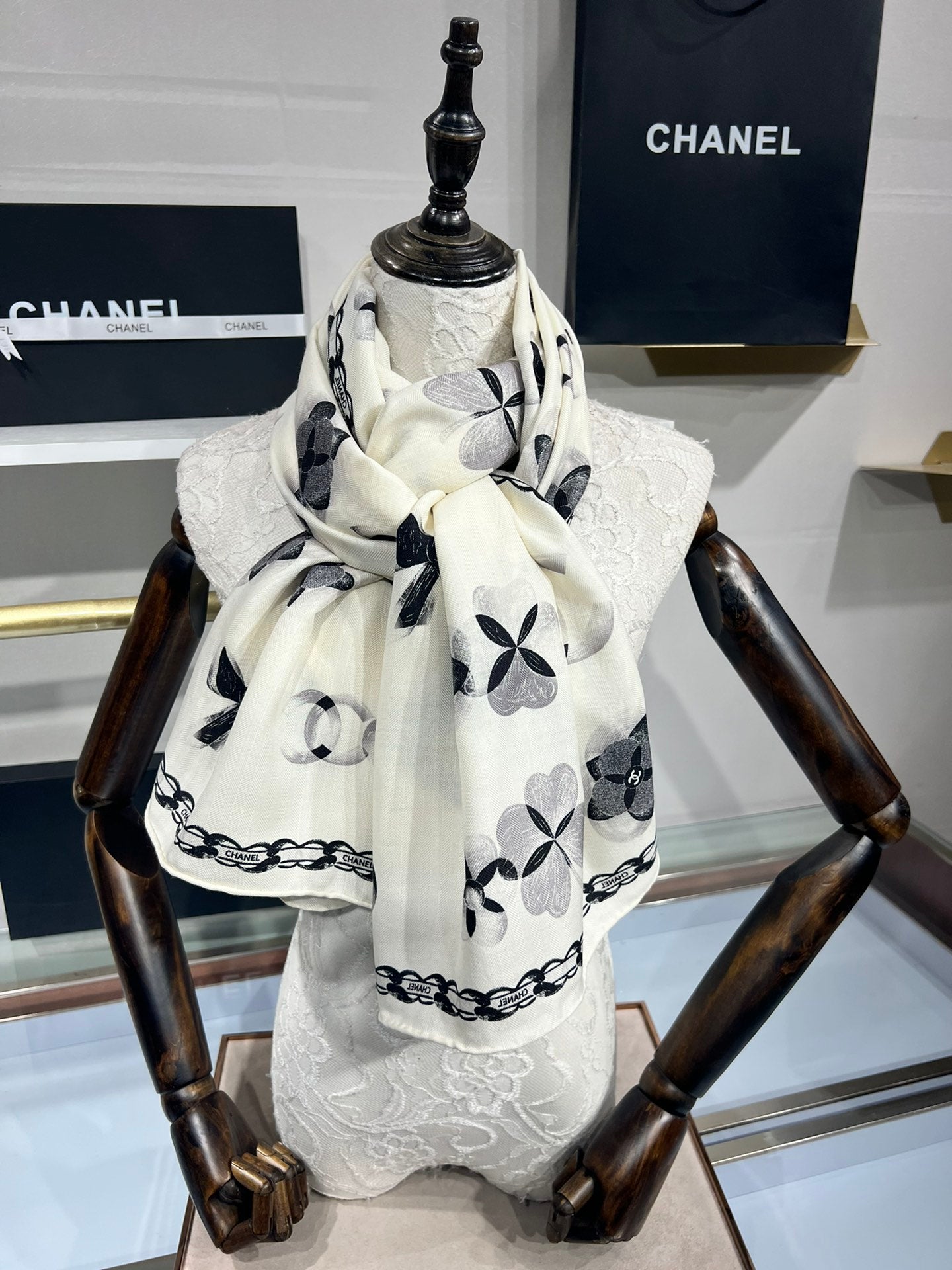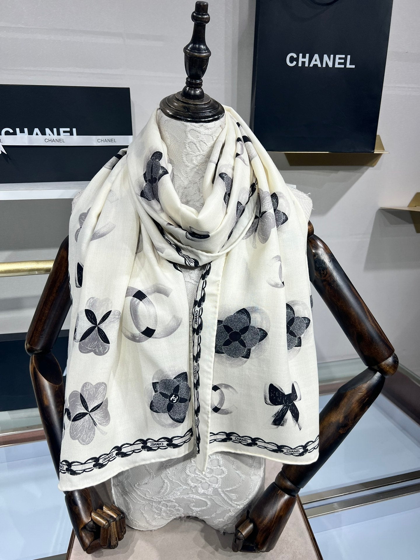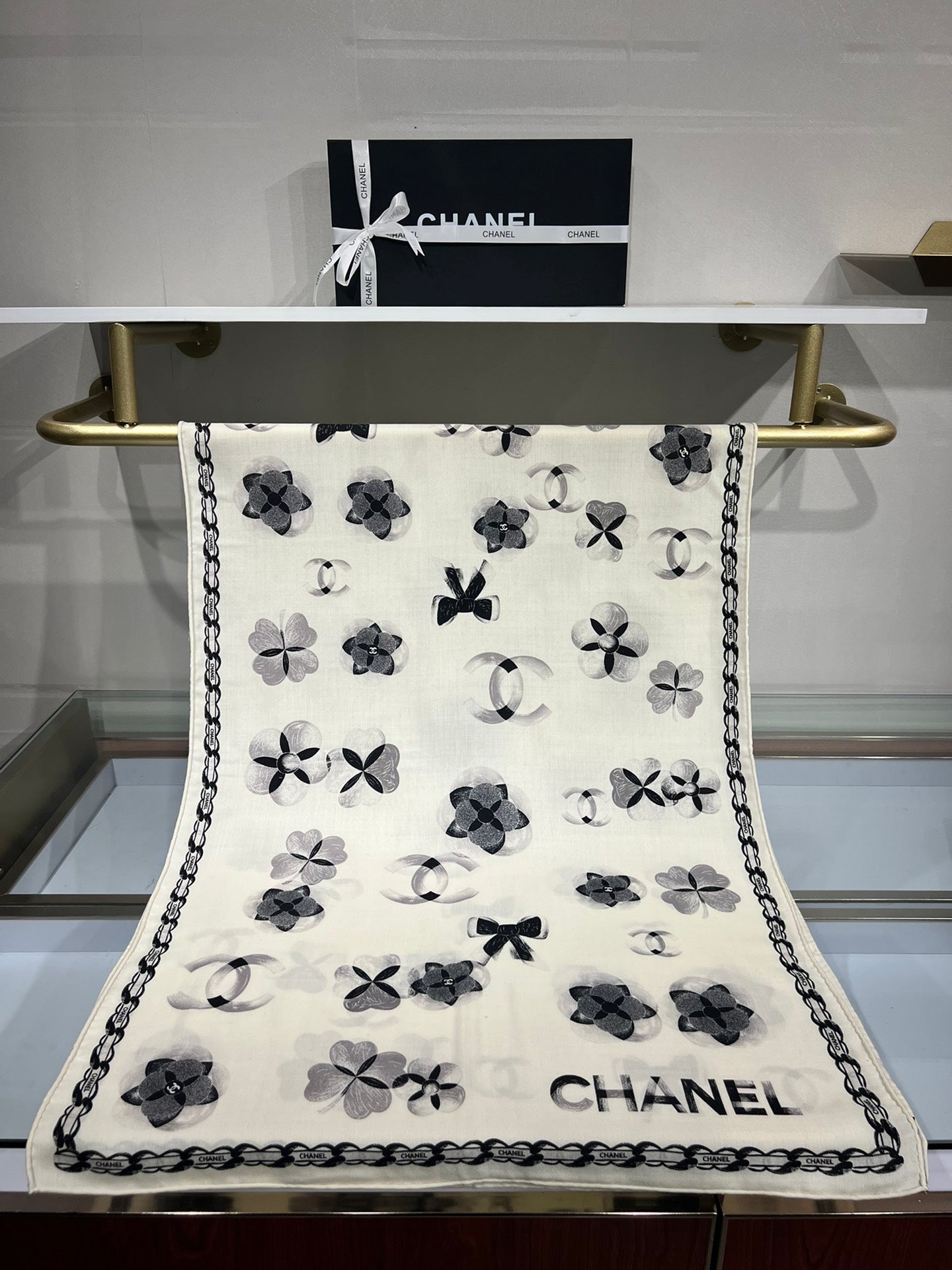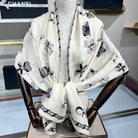CC Scarf 185 CM In White Black Cashmere Silk 413589
