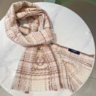 CC Scarf 186 CM In White With Brown Stripes Fleece Wool 416926